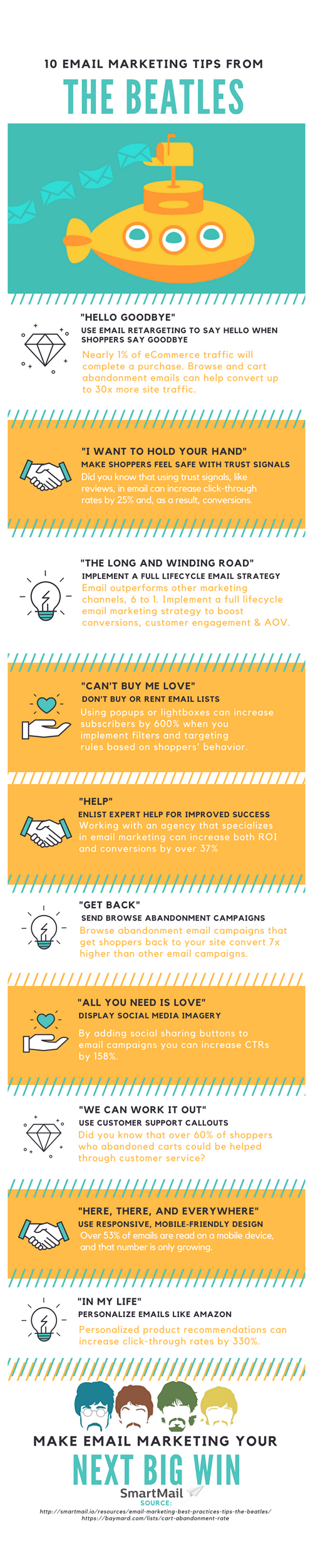 Is your email strategy in need of some inspiration? Get the top 10 email marketing and best practices inspired by the Beatles in this handy infographic from SmartMail.