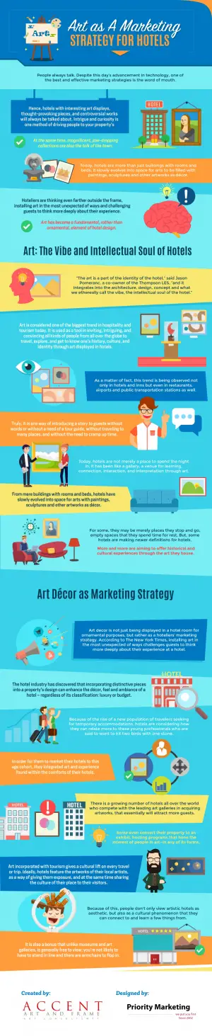 Using art as a marketing strategy can be a highly effective way for hotels to generate buzz, engage guests, and create memorable experiences. Thoughtful and captivating art displays can leave a lasting impression on visitors, encourage them to share their experiences with others, and ultimately drive more business to the hotel.