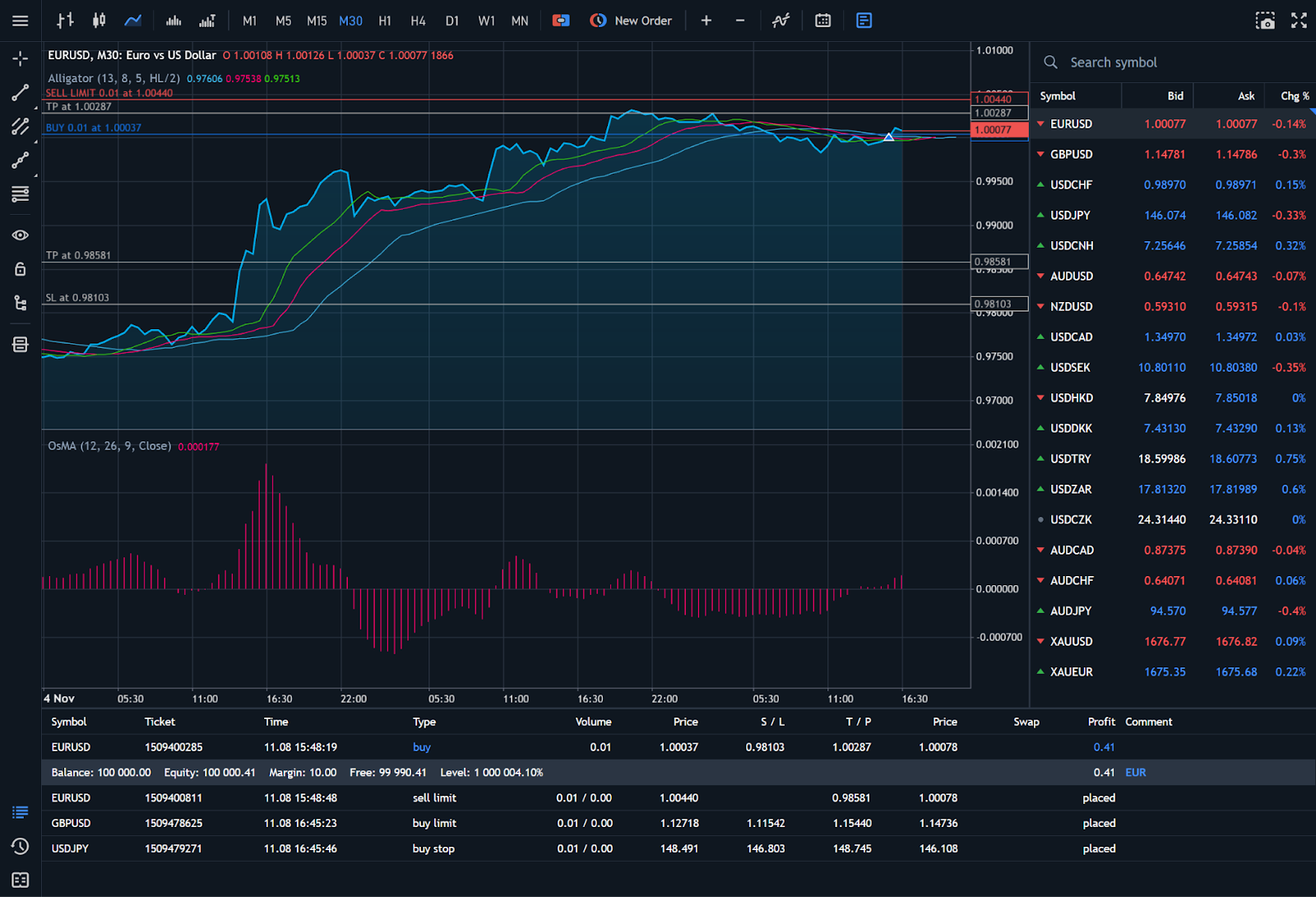 MetaTrader 5 Web Terminal is an example of a viable web-based trading platform that incorporates all the necessary financial tools and forecasting features to make trades. This web app can be accessed from any browser on any device. Your account syncs and updates data across all the devices you are logged in to.