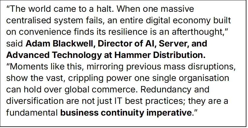Following yesterday’s massive AWS network disruption, Hammer stresses that redundancy and on-premise control are no longer ‘nice-to-haves,’ but essential business lifelines.