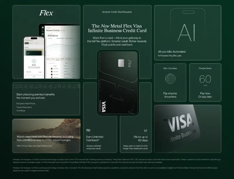 The timing aligns with Flex’s upcoming launch of Flex Elite, their new invite-only consumer card and membership, debuting today. Designed as a direct competitor to Amex Centurion, Flex Elite extends the company’s strategy to become the private bank for middle-market business owners, giving them a unified system that spans every dimension of their financial lives.