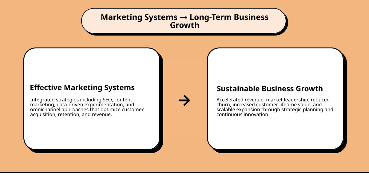 Consider the visual of a professional business scaling graph with a steady upward trajectory. Strategic planning, keen market dynamics, and intelligent media integration drive this. It signifies sustainable expansion and accelerated revenue. An infographic that explains how effective marketing systems drive long-term business growth perfectly illustrates this journey.