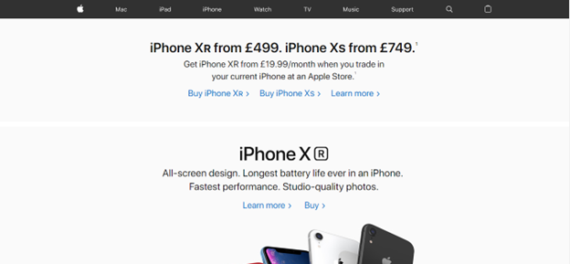 Upon viewing the above the fold section of these websites, you will see that it communicates what products each brand offers. In the above screenshot, it’s clear from the website that it sells iPhone gadgets.