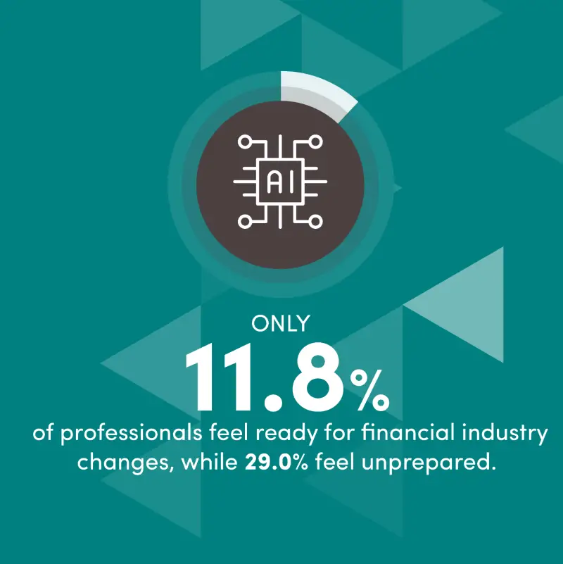 However, despite the recognition of technology’s transformative power, only 11.8% of professionals feel that their organisations are very much prepared for upcoming changes in the financial industry. This reveals a gap in readiness and emphasises the urgency of strategic planning and skill development to navigate future financial trends effectively.