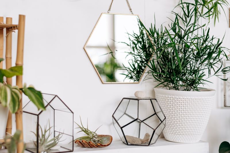The geometry is what makes the use of laser-cut scraps beautiful. Miniature mirrors, these small hexagonal mirrors can serve as mini prisms, whether you prefer clean-edged hexagons, the dainty celestial forms, or abstract pieces of shards. They are installed in strategic positions in order to capture light in other rooms and distribute it in the corridor.