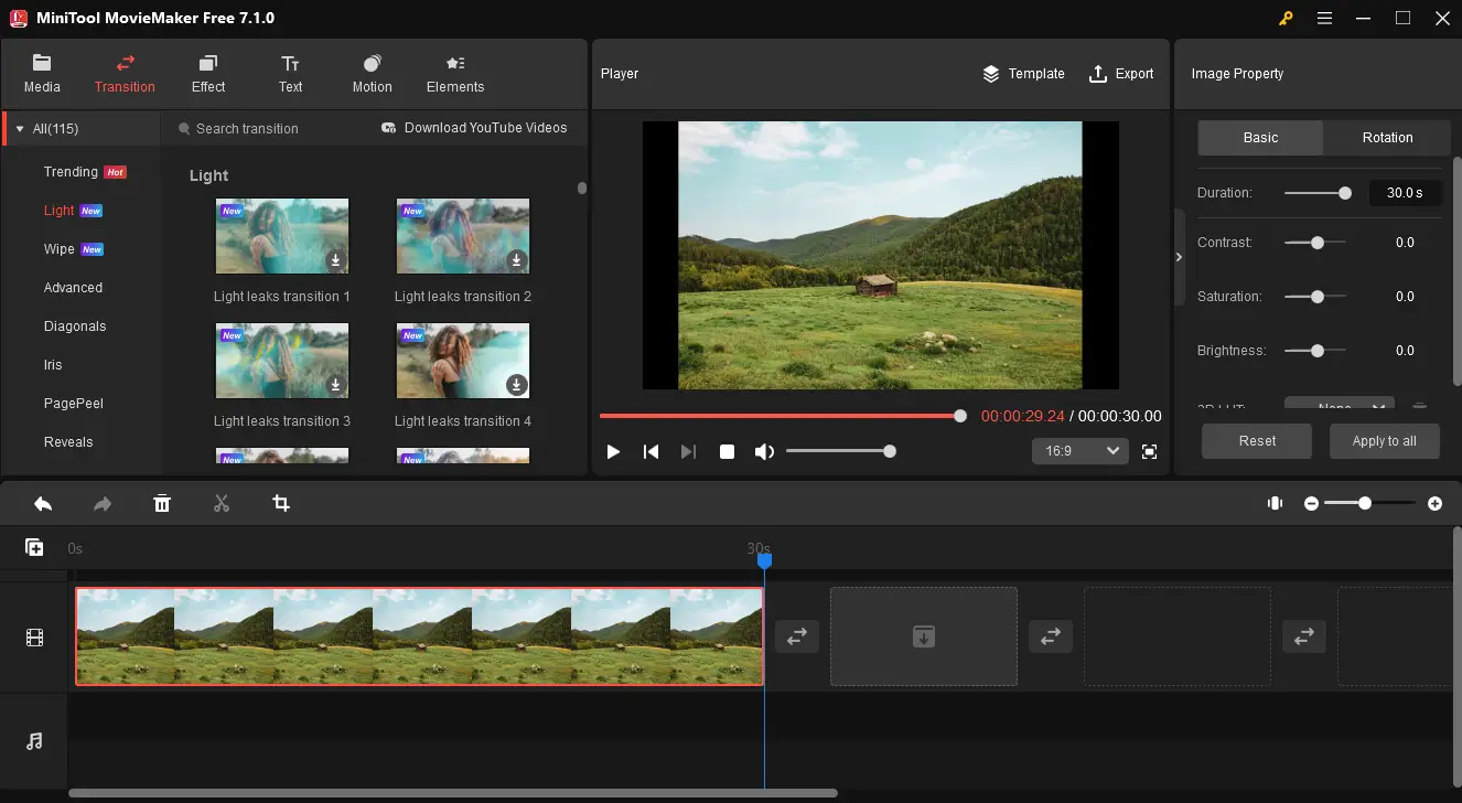 Whether you’re looking to add a touch of cinematic flair, create a seamless visual flow, or evoke a specific emotional response, MiniTool MovieMaker provides the tools and assets to bring your creative vision to fruition.