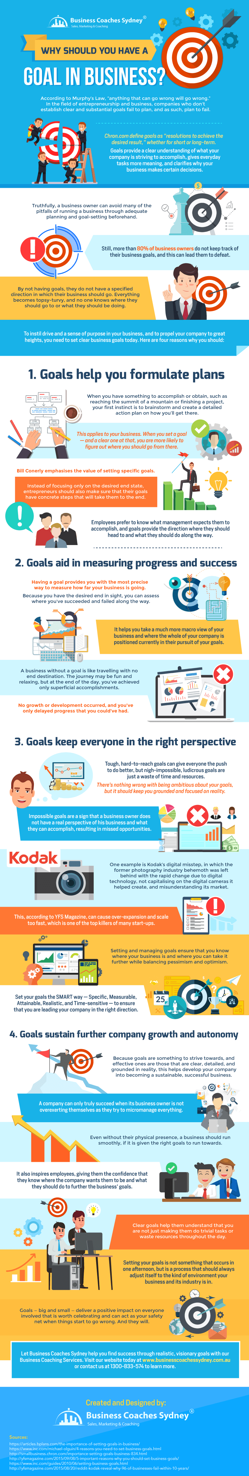 Goals are the foundation of what keeps the mission and vision of a company; it lets workers drive their passion with having quality work and services, and also, create the company’s label for the benefit of the customers. To learn more about the different tips and reason on why you should have a goal in your business, kindly check the infographic below created by Business Coaches Sydney.